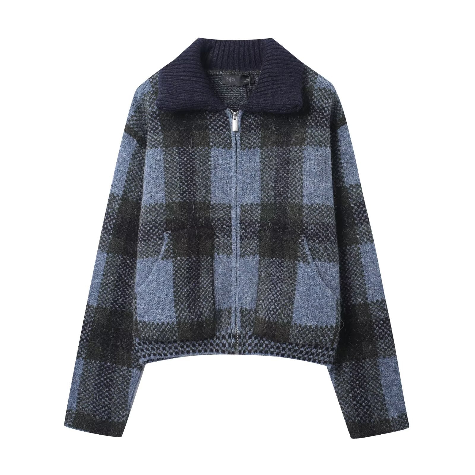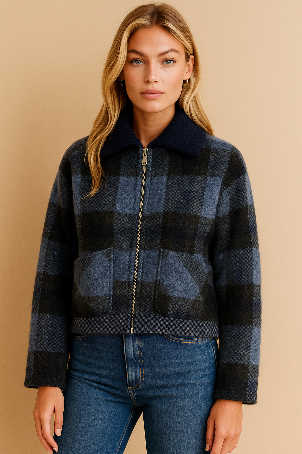 Dames Elegante Stoere Geruite Korte Jas met Rits | Bina