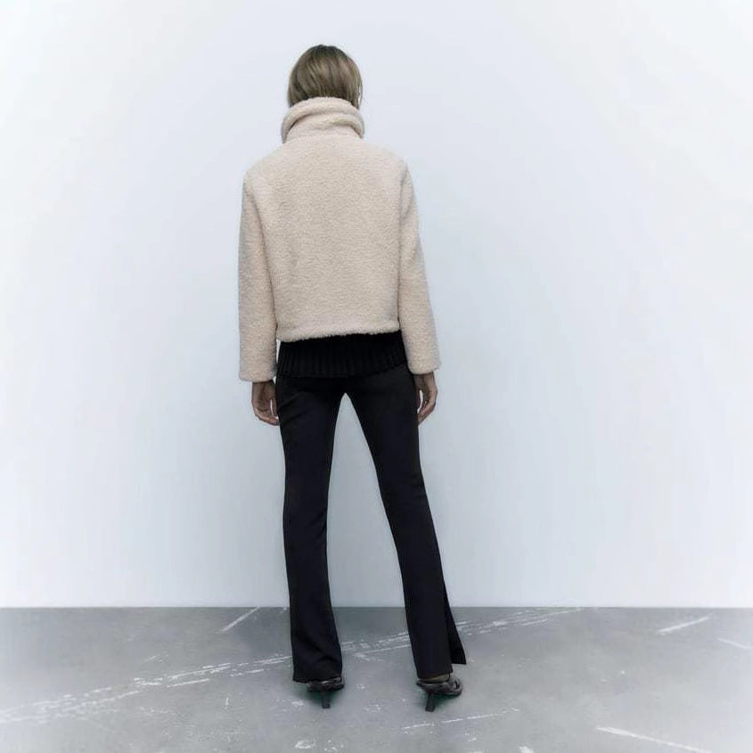 Deze heerlijk zachte teddy jas is perfect voor koude dagen. De korte pasvorm geeft een moderne, speelse look, terwijl de wollige stof zorgt voor ultiem draagcomfort.