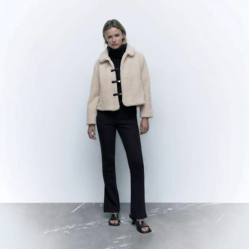 De jas heeft een opvallende brede kraag en mooie houten toggle-sluitingen die een warme, klassieke uitstraling geven. Dankzij de rechte snit en de comfortabele pasvorm draag je hem moeiteloos over truien, blouses en basic outfits. Ideaal voor een dagelijkse, cosy winterlook.