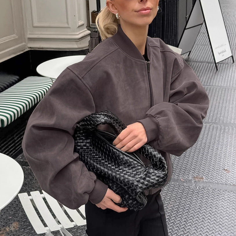 Dames Elegante Vintage Suède Look Bomber Jas | Bolaida