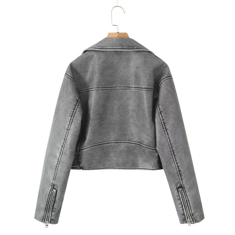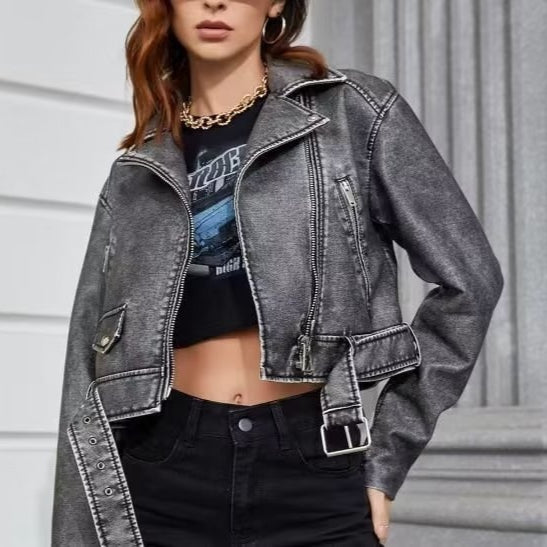 Dames Korte Stoere Afgewassen Bikerjas met Ritsen | Belissa