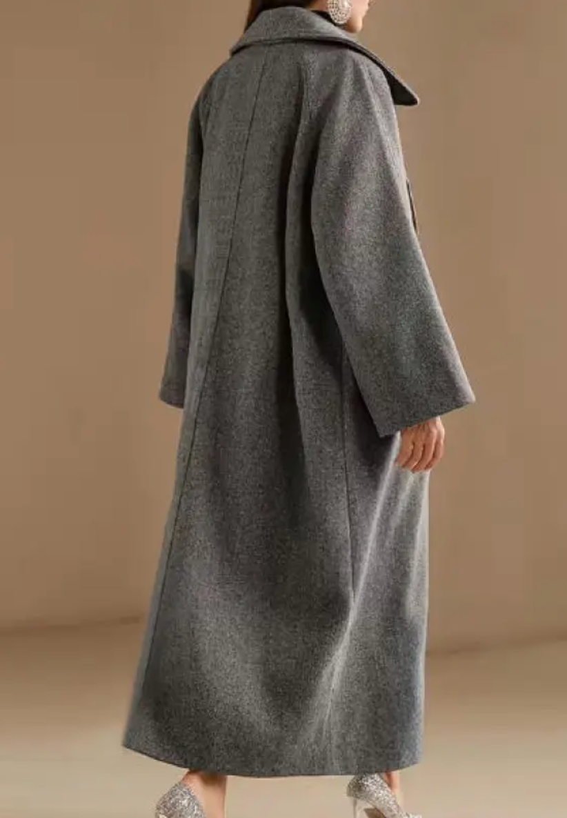 Deze grijze wollen jas is het toonbeeld van minimalistische elegantie. Met zijn lange, rechte snit en brede revers straalt hij pure klasse uit. De jas is gemaakt van een zachte wolmix die warmte biedt zonder zwaar aan te voelen — perfect voor het najaar en de winter. Dankzij het verfijnde, tijdloze ontwerp is dit een investering die seizoen na seizoen stijlvol blijft.