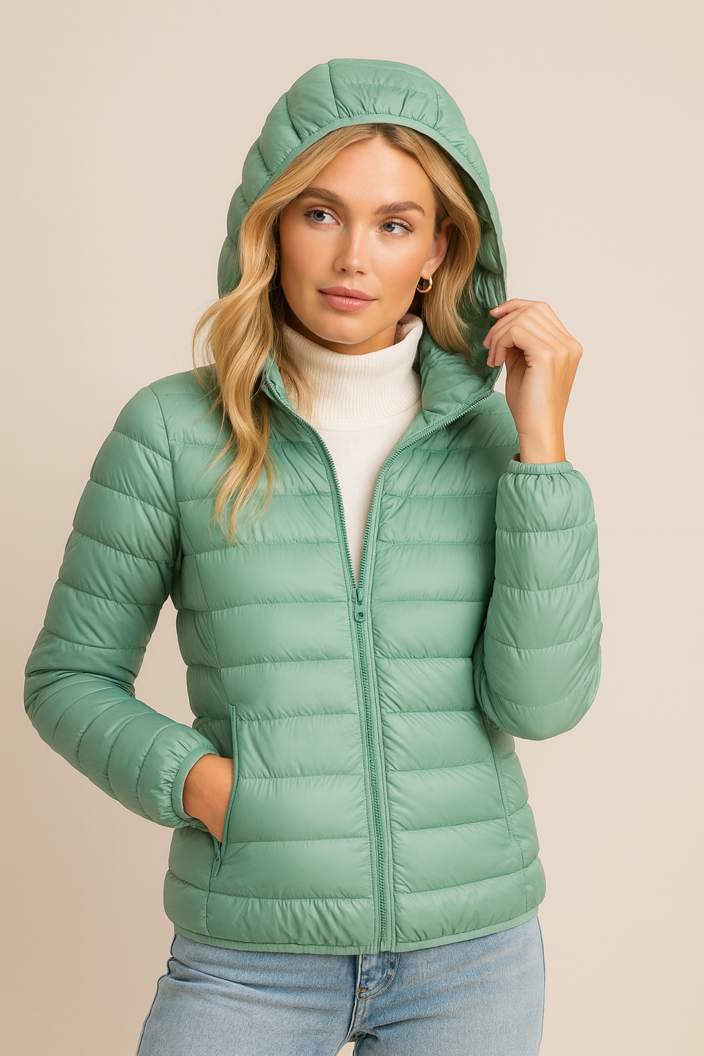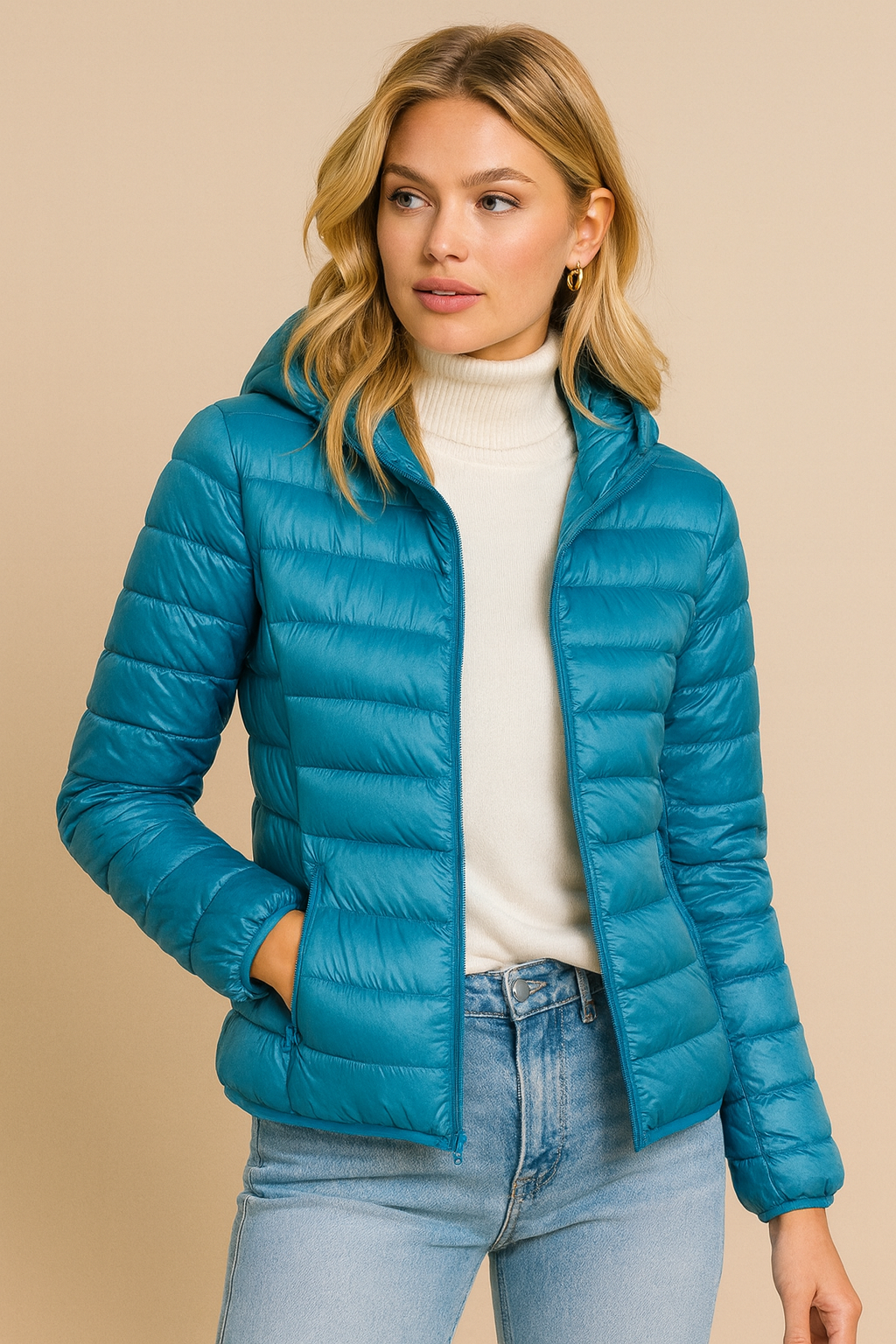 Deze ultralichte donsjas met capuchon voor dames is de perfecte combinatie van warmte, gemak en stijl. Dankzij de hoogwaardige donsisolatie blijf je behaaglijk tijdens koude dagen, terwijl het lichte ontwerp ervoor zorgt dat de jas nauwelijks aanvoelt. Bovendien is de jas eenvoudig opvouwbaar, waardoor je hem compact kunt meenemen op reis, tijdens outdooractiviteiten of gewoon voor dagelijks gebruik.