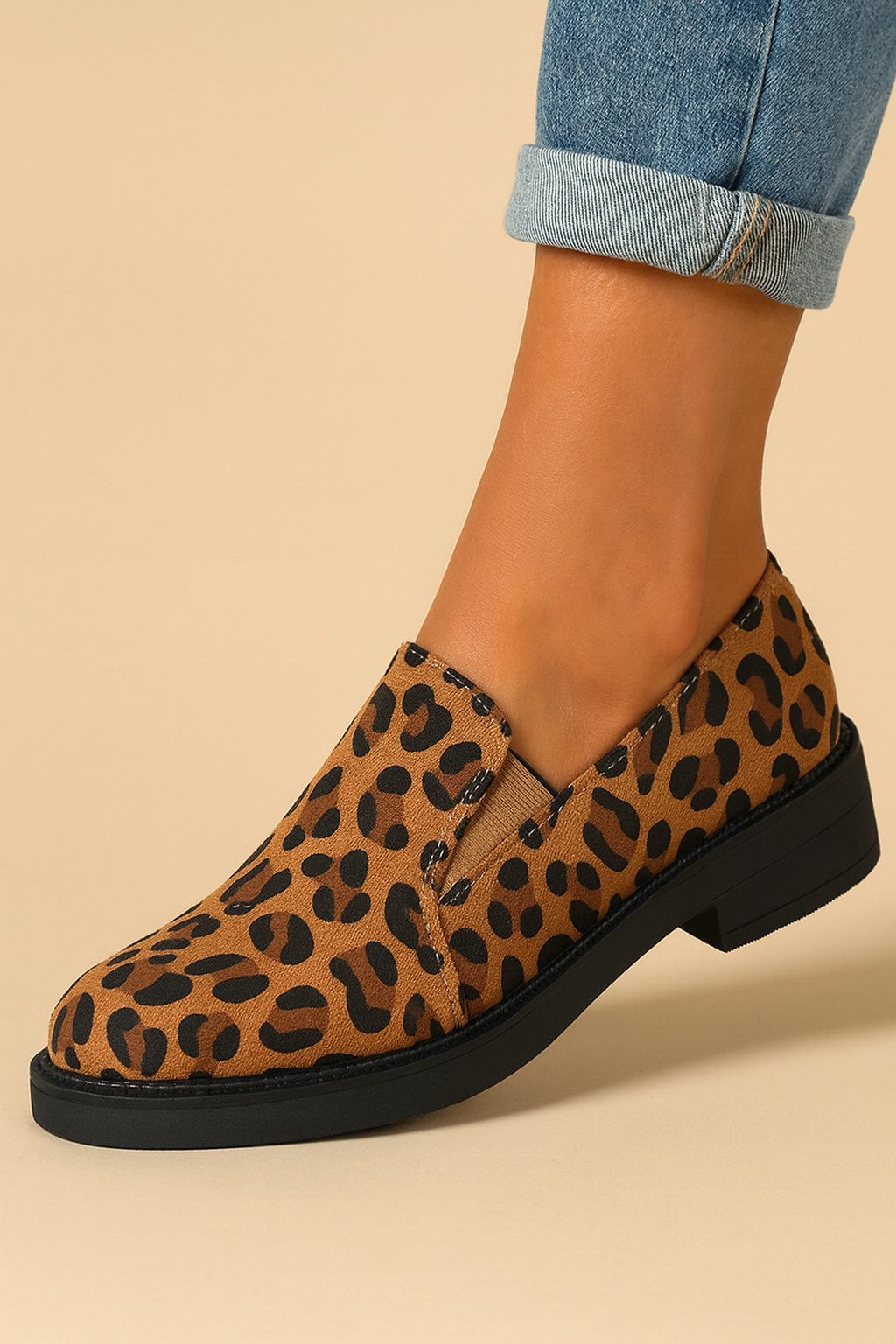 Op zoek naar opvallende schoenen die je outfit direct karakter geven? Deze panterprint instappers zijn de perfecte mix van stijl en gemak. De stevige zool geeft een subtiel, robuust effect, terwijl de zachte, suede-achtige stof comfortabel aansluit rond de voet.