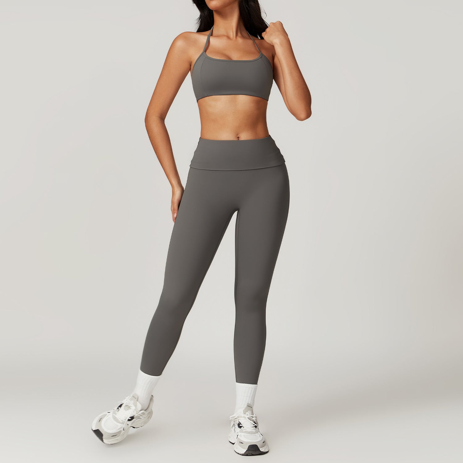Deze 2-delige yoga set voor dames is dé perfecte combinatie van stijl en functionaliteit. De set bestaat uit een cropped sporttop met dunne bandjes en een nauwsluitende high-waist legging die jouw figuur prachtig accentueert.