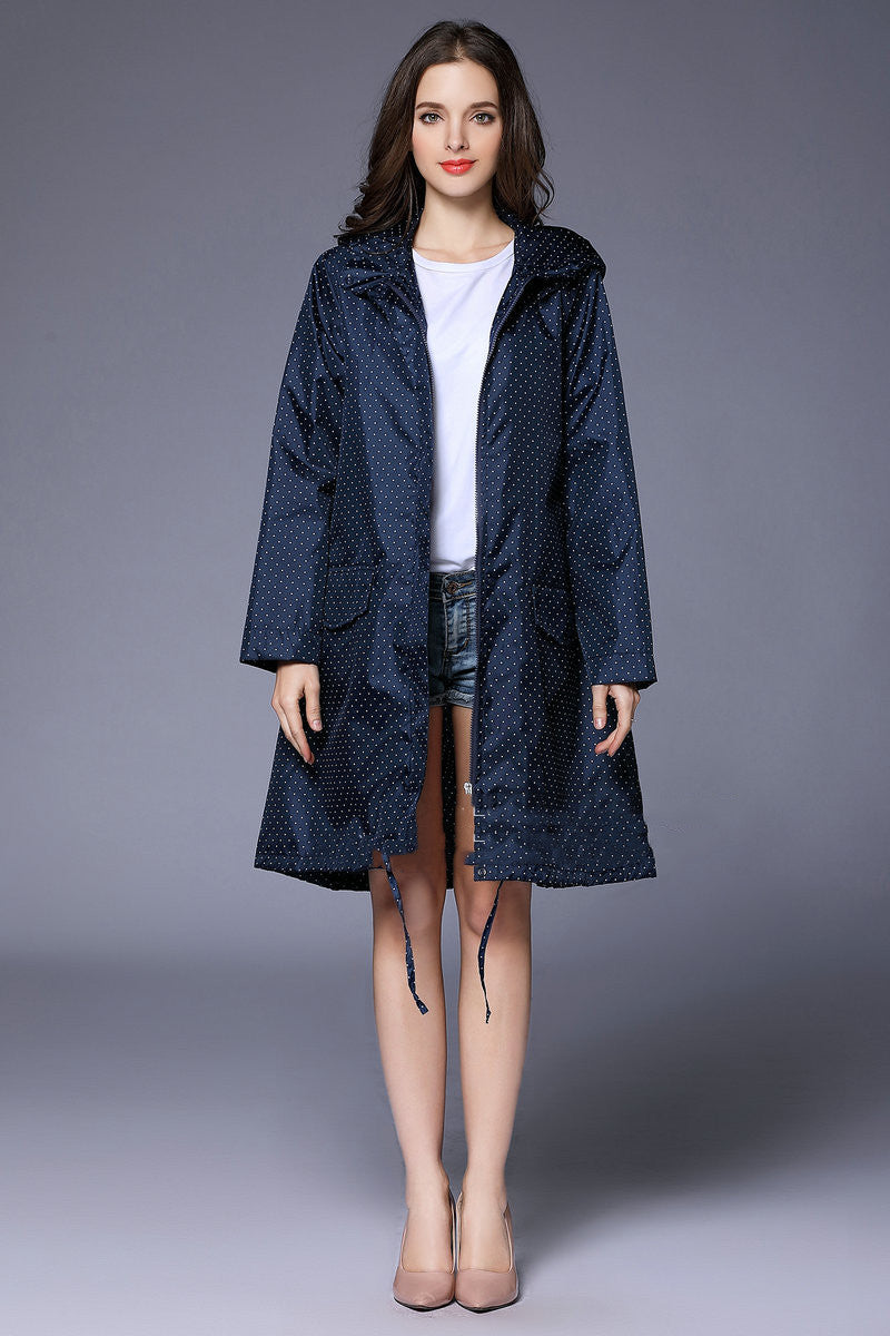 Op zoek naar een praktische maar vrouwelijke regenjas? Deze winddichte regenjas met mini polkadot print is de perfecte combinatie van functionaliteit en stijl. Het lichte, soepele materiaal beschermt je tegen wind en lichte regen, terwijl de subtiele polkadots de jas een speelse en moderne uitstraling geven.