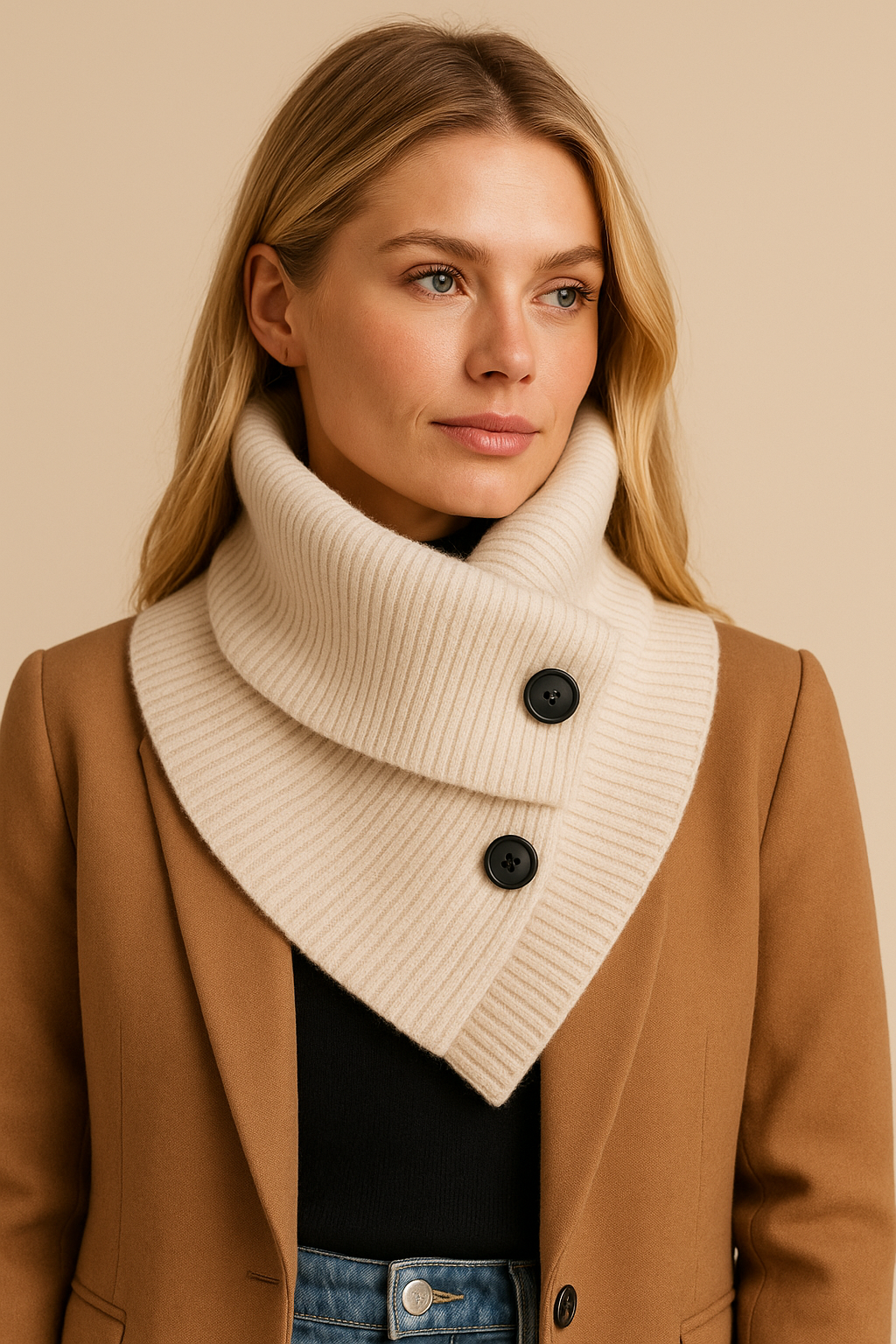 Dames Eigentijdse Warme Gebreide Col Sjaal met Knopen | Laverne