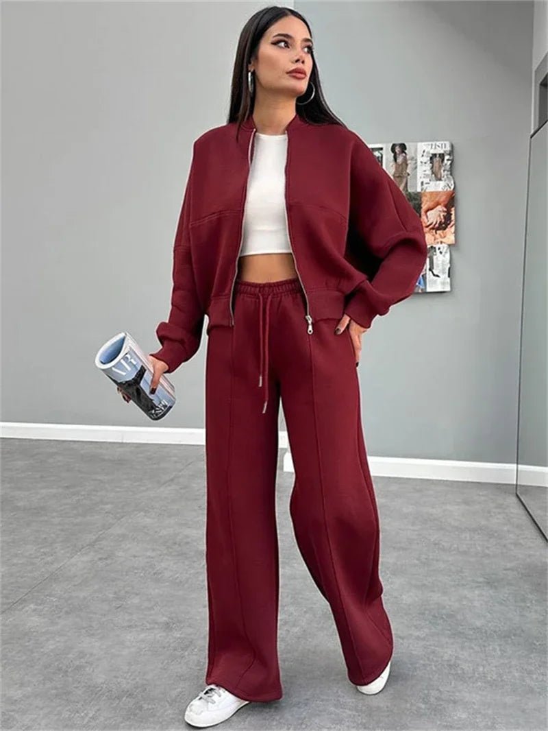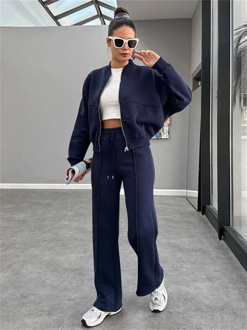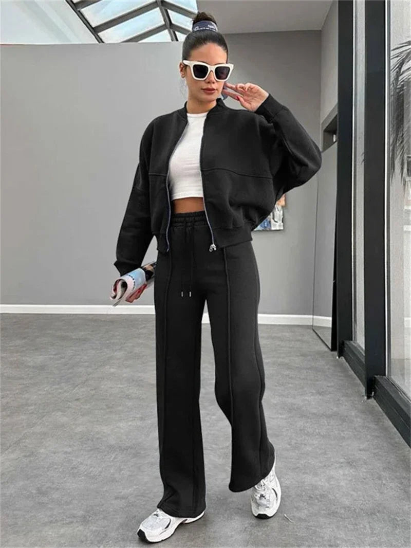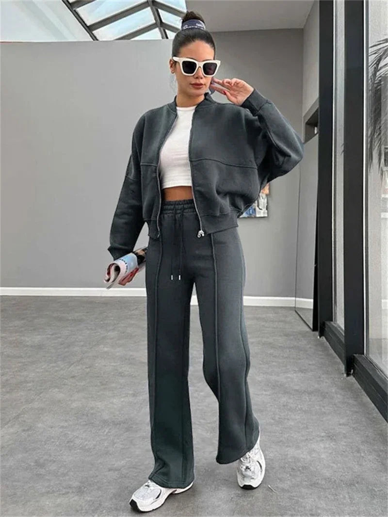 Dames Moderne Sportieve Tweedelige Fleece Set met Jogger en Vest met Rits | Demelza