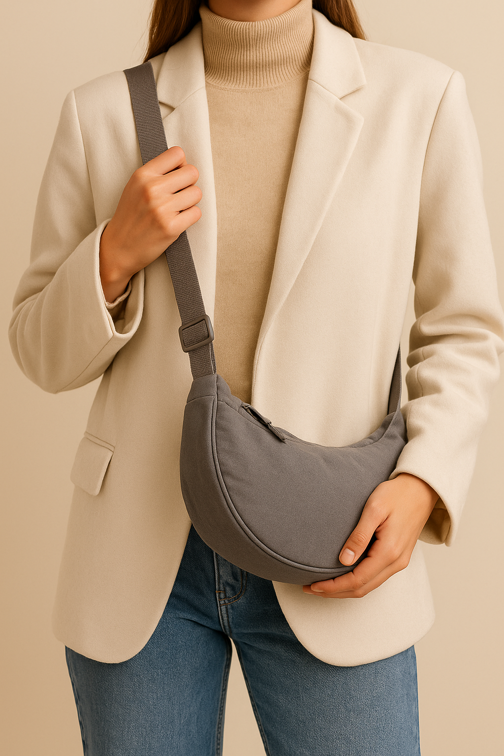 Deze elegante halve maan schoudertas is de perfecte mix van minimalistisch design en praktische functionaliteit. Het stijlvolle silhouet maakt hem moeiteloos combineerbaar met zowel casual als formele outfits, terwijl de duurzame materialen zorgen voor een tas die je dag in dag uit kunt dragen.