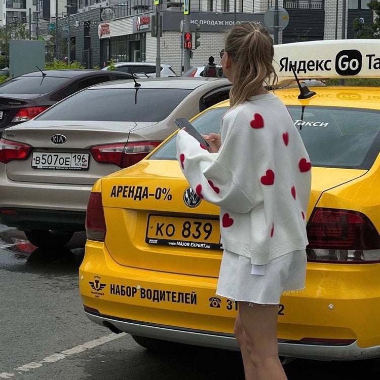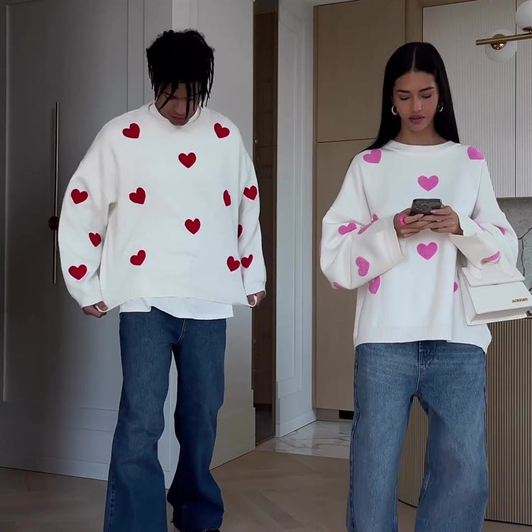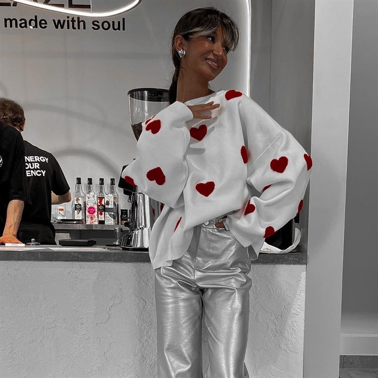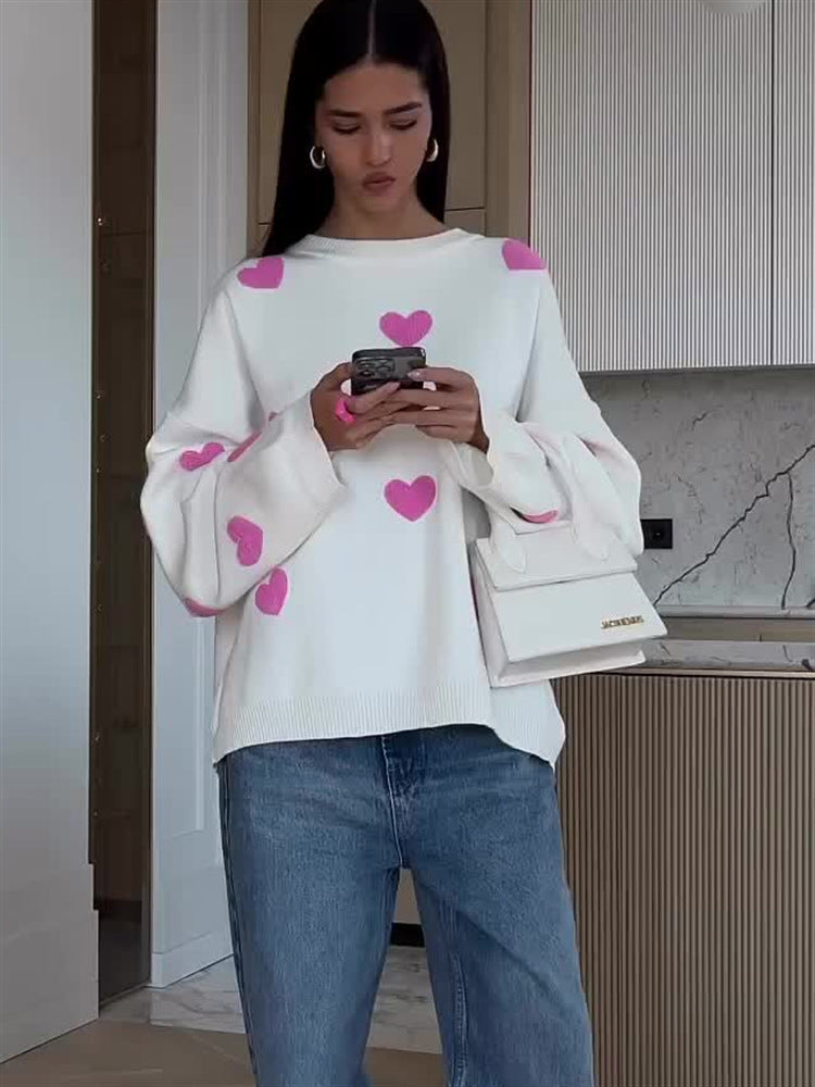 Dames Elegante Stijlvolle Ruimvallende Gebreide Trui met Harten Jacquard | Ralissa