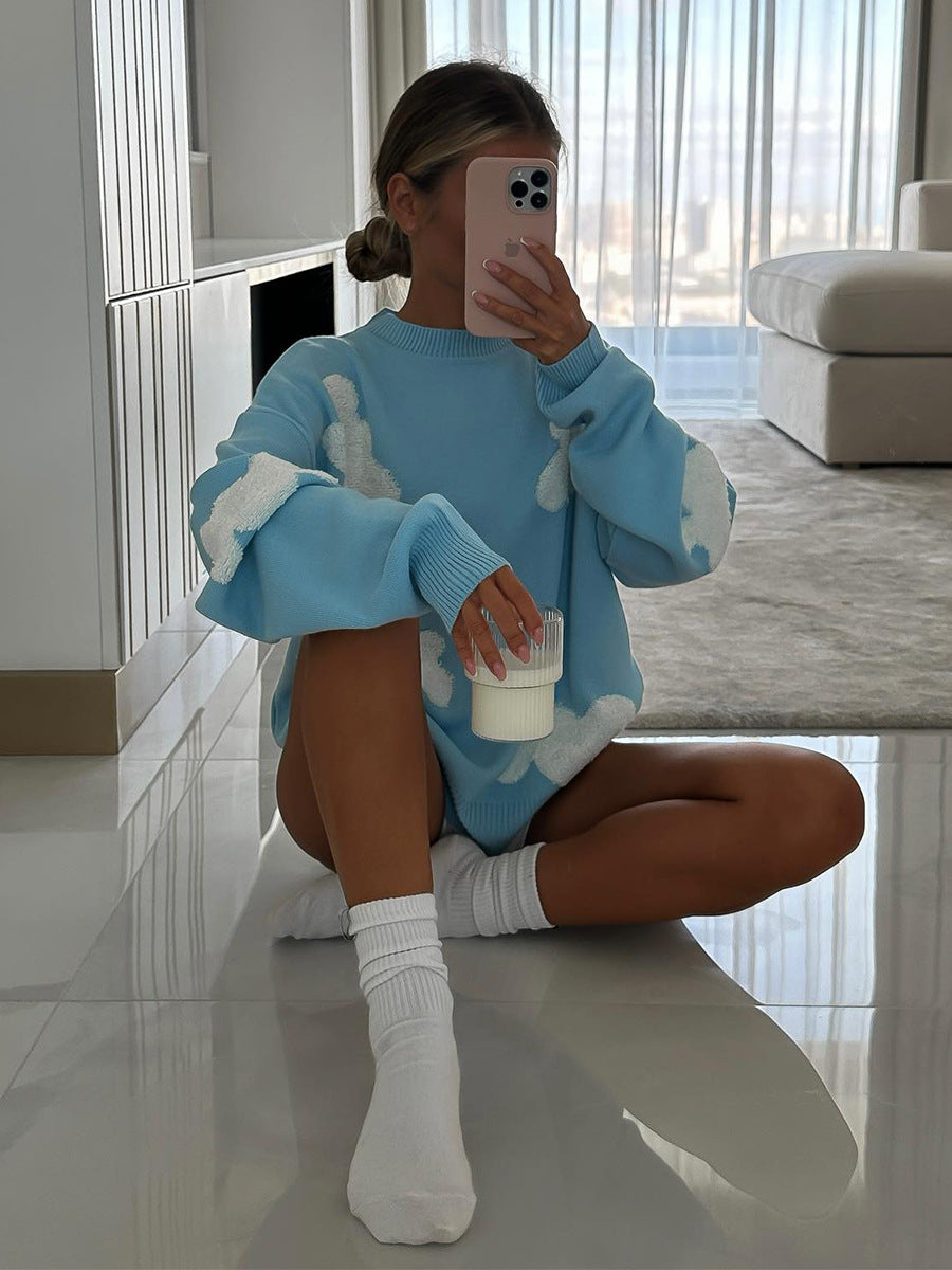 Combineer deze vrolijke trui met je favoriete jeans of een leren broek voor een look die zowel cozy als stylish is — liefde op het eerste gezicht gegarandeerd!