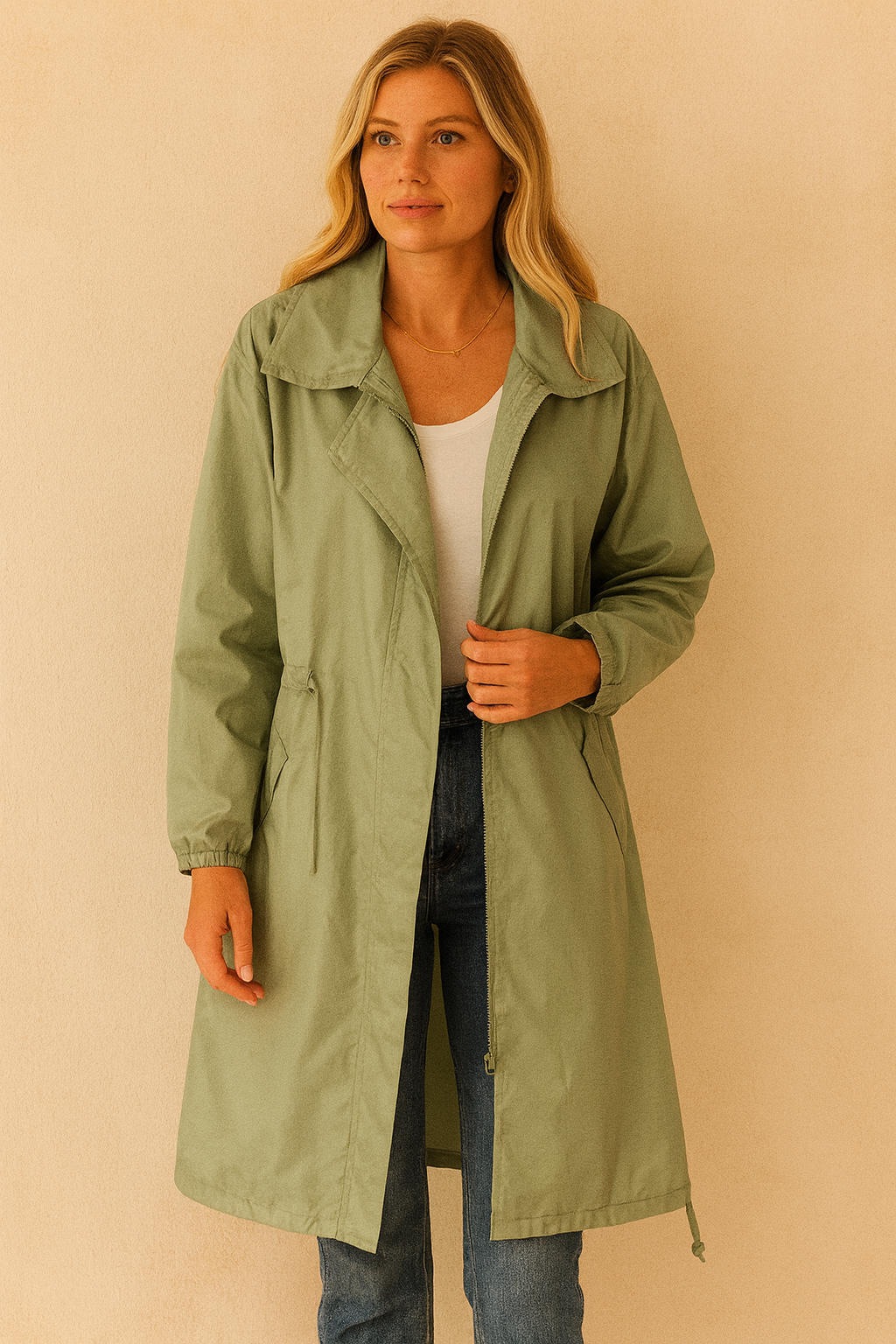 Deze regenjas combineert stijl en functionaliteit als geen ander – perfect voor vrouwen die droog willen blijven zonder concessies te doen aan hun outfit.