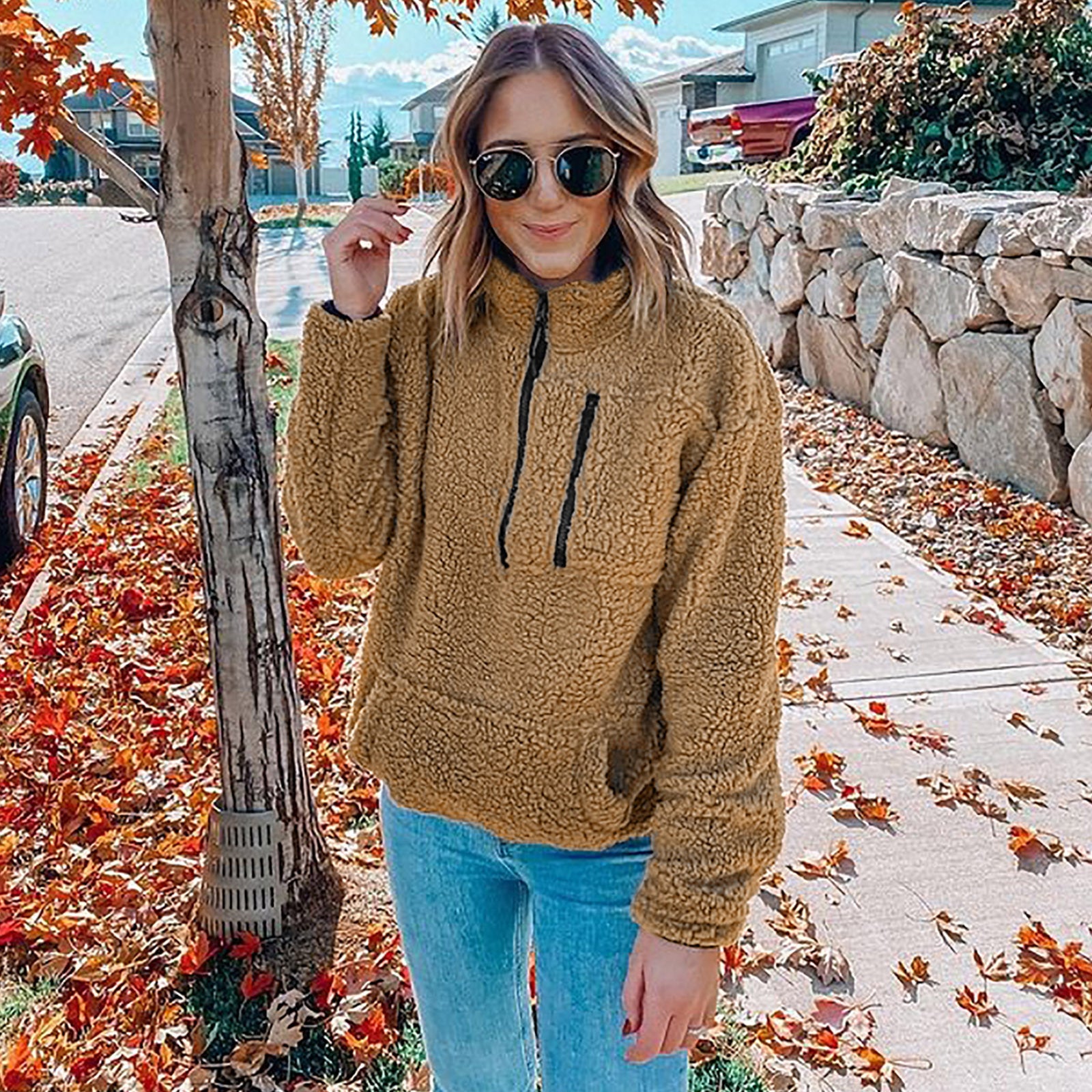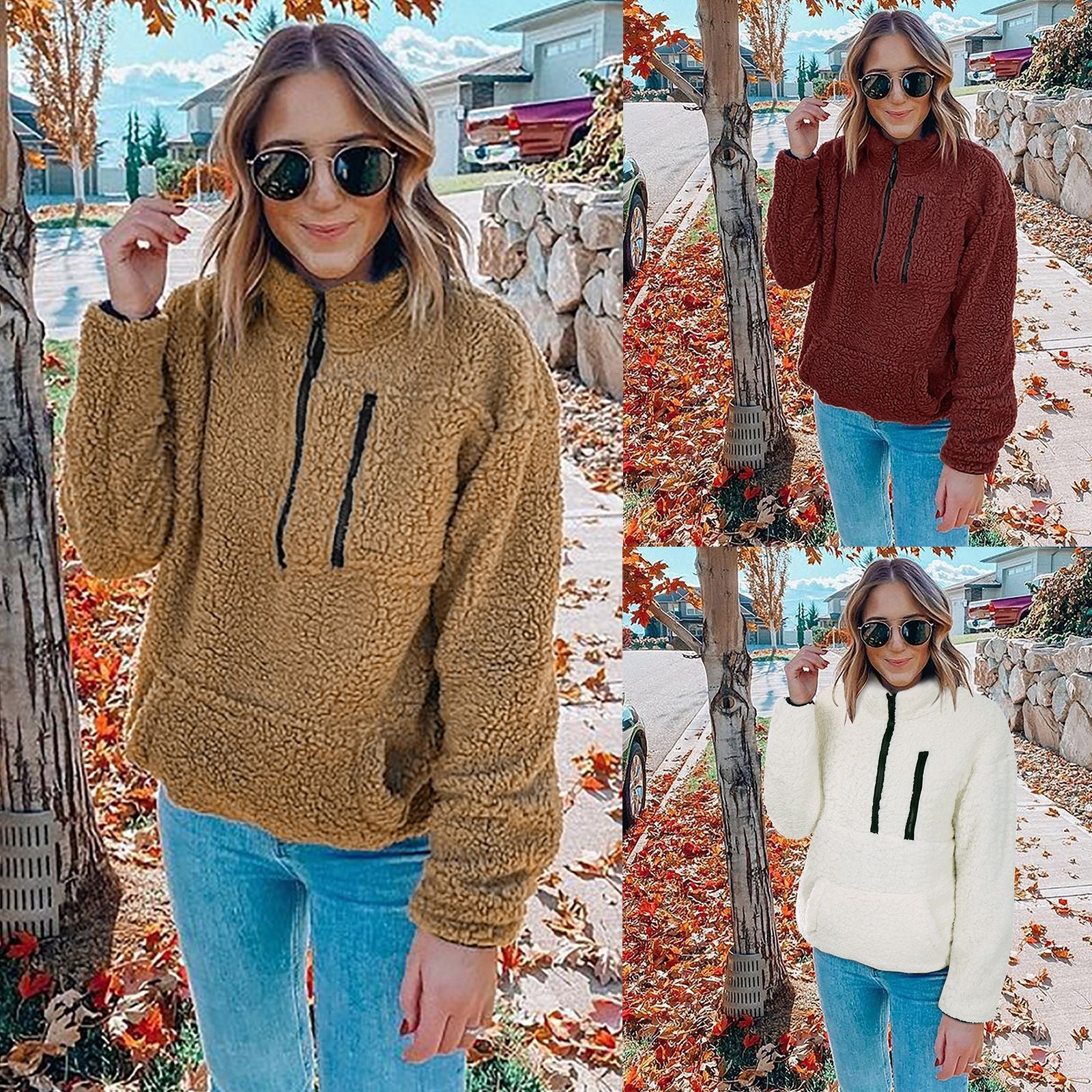 Dames Warme Teddy Fleece Trui met Hoge Kraag en Rits | Sael