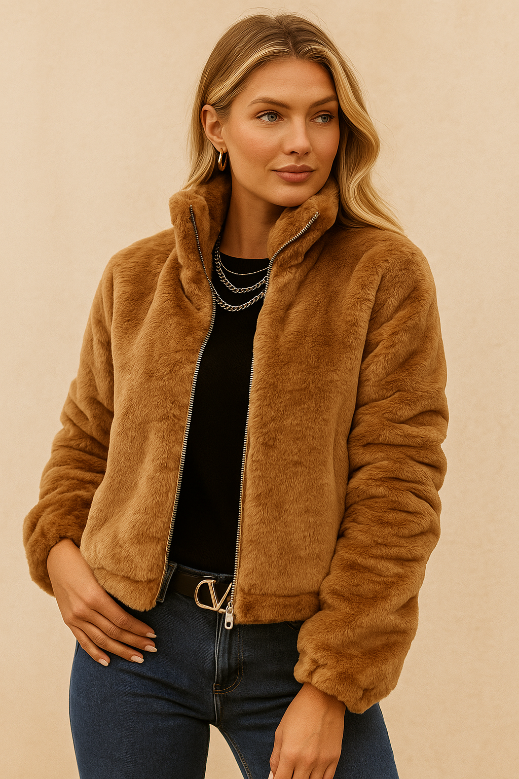 Deze zachte teddy jas is hét ultieme kledingstuk voor de koude seizoenen. De jas is gemaakt van luxe imitatiebont dat heerlijk zacht aanvoelt en je warm houdt zonder te zwaar te zijn. Dankzij de korte, moderne snit en de stijlvolle ritssluiting combineert hij moeiteloos met elke outfit — van casual jeans tot een elegante rok. Verkrijgbaar in meerdere kleuren zodat je altijd jouw perfecte look kunt creëren.